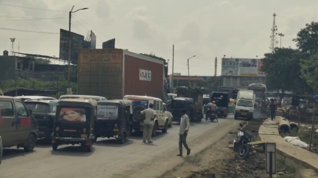 જુના નેશનલ હાઇવે નંબર 8 ને જોડાતા મહાવીર ટર્નીંગ પર ટ્રાફિક ઓએનજીસી કોલોની- રાજપીપળા ચોકડી રોડ પર જોવા મળી હતી.