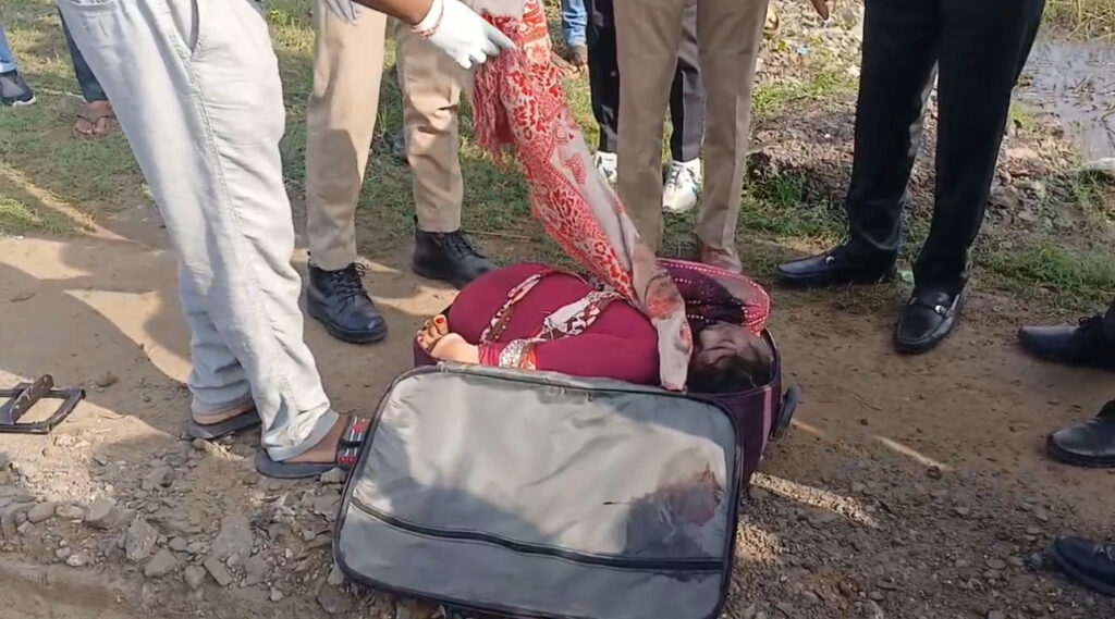 હત્યારાએ પગ બાંધી બે ફૂટની ટ્રોલી બેગ માં બેવડું વાળી ભરી હતી.