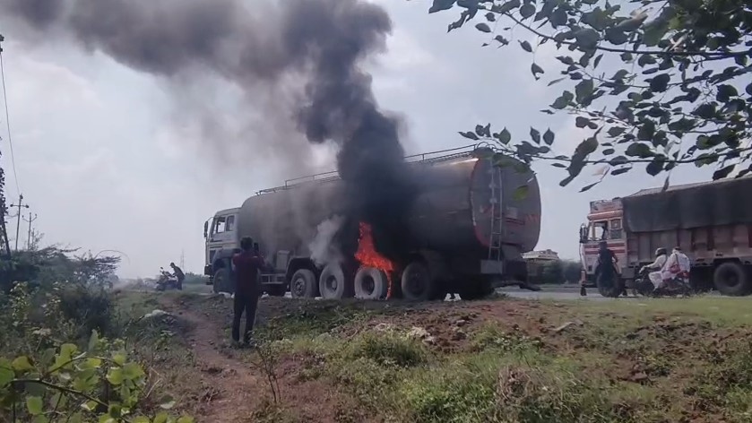 પાનોલી-ખરોડ બ્રિજ નજીક સોયાબીન તેલ ભરેલા ટેન્કરમાં અચાનક ભીષણ આગ લાગી હતી.