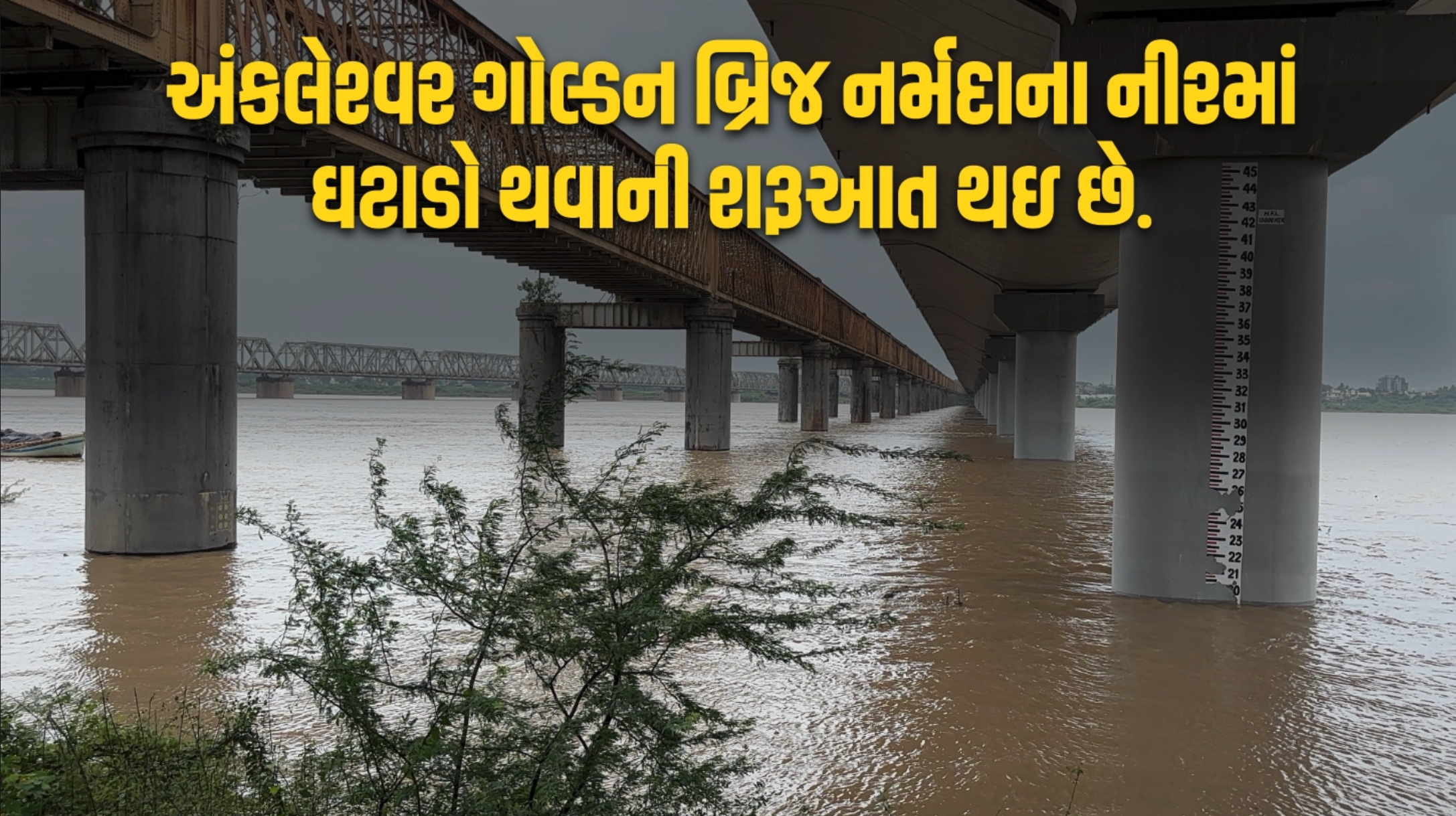 અંકલેશ્વર, ભરૂચઅંકલેશ્વર ગોલ્ડન બ્રિજ નર્મદાના નીરમાં ઘટાડો થવાની શરૂઆત થઇ છે. Vaat Ankleshwarni / August 31, 2025